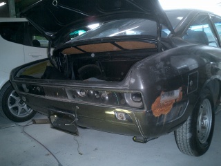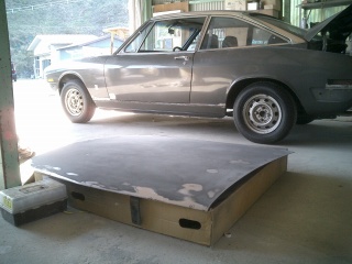 ・kawamotoさんの写真アップ。 イーグル狭山でクーペを購入したkawamotoさんが写真を送って下さったのでアップしました。 (以下kawamotoさんの解説です) 1) オール塗装中です。ブルーメタ+パール入りです。 2) ドアミラーの様子です。タイヤは車検おわるまでこれです。 |