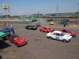 ・筑波ミーティングサマー出場 出場しました。 クラスは、S75−2。 走る顔ぶれは、ブルーバード510、サバンナRX−3、ポルシェ911、フェアレディZ432など速い車ばかりです。 速い車ばかりといっても出場するからには良い順位を!と思っていたのですが、そう上手くいかないものですね。。 せっかく9,000回転以上回るエンジンなのに、6,500回転までしか使えないという問題がありました。 頑張って改善しようとしたのですが当日までに解決できず。。。(泣) なので、今回のレースの目標は、出場して完走! 当たり前のことじゃんというご指摘あるかと思いますがエンジントラブルという難題があったので、僕にとっては大きな目標でした。 で、結果はというと・・・完走できました。 でも、チェッカーフラッグ後に燃料切れでコース場に停車してしまいました。 エンジンの問題は、おそらく純正デスビを改造したカムアングルセンサーにあると思います。今後また検証していきます。 あと、実は、エンジン以外にも問題がありました。 走行練習不足、アライメント(キャンバ)の未セッティングです。 また、デフとミッションからのオイル漏れもありました。 オイル漏れは予選後の車検の時に発見されました。 燃料切れは、当日までに正確な燃費計算ができなかったのが原因です。 今回は反省点ばかりです。この経験を活かしてまたがんばりたいと思います。 最後ですが、30度を超える暑い中参加してくださったうんちくさん、117おやじさん、ありがとうございました。今回、屋根のあるピットを確保できずすみませんでした。次はちゃんと確保できるよう準備します。 なので10月23日またよろしくお願いします!(爆) |